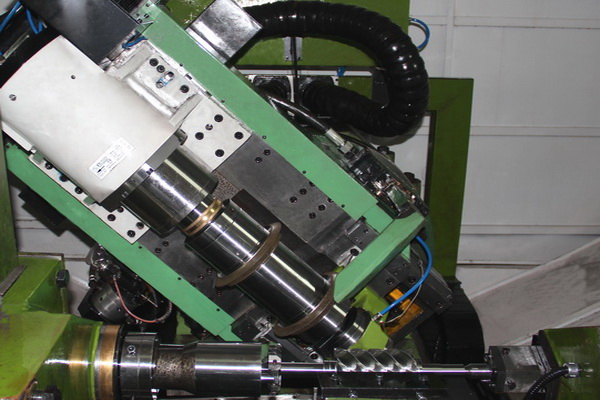機(jī)床砂輪架上安裝有兩個(gè)CBN砂輪部件,分別完成轉(zhuǎn)子槽的粗/精磨削,砂輪架可沿軸向移動,使CBN砂輪移動至對應(yīng)的磨削工位。通過對工件的粗磨及精磨,是一種大幅提高螺桿/螺旋轉(zhuǎn)子工件齒型型線各項(xiàng)精度指標(biāo)的先進(jìn)工藝方式。